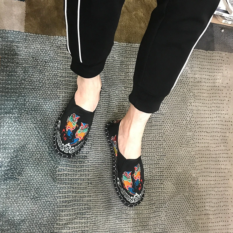Spring Canvas Mens Vulcanize Shoes Embroider Mens Shoes Casual Fashion Male Flats Loafers Man Women Harajuku Sneakers Light 2019