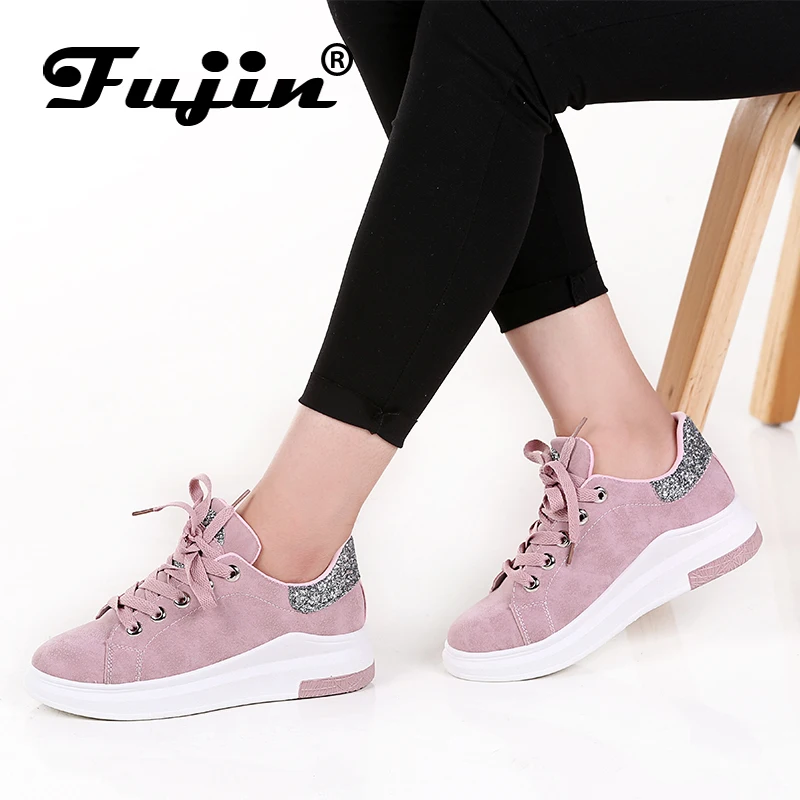 Fuijin 2020 Spring Summer Autumn Women Fashion Sneakers Female Casual Shoes Platform Pu Leather Classic Cotton Lace Up Shoes