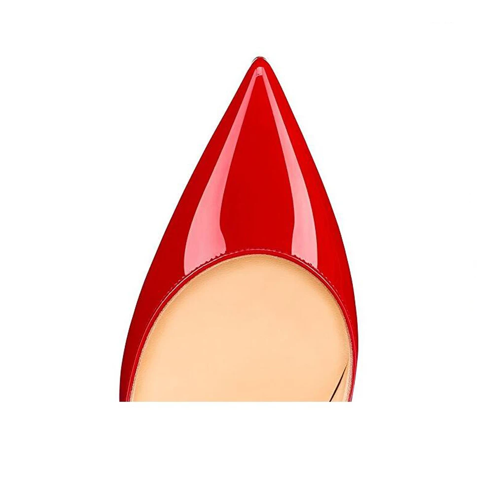 Genshuo Women Pumps Brand High Heels Black Patent Leather Pointed Toe Sexy Stiletto Shoes Woman Ladies Plus Big Size 11 12