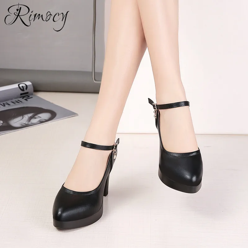 Special Offer Rimocy High Heels Platform Pumps Mujer Spring Fashion Buckle Solid Black Shoes Woman Pu Le with FREE Shipping Worldwide!