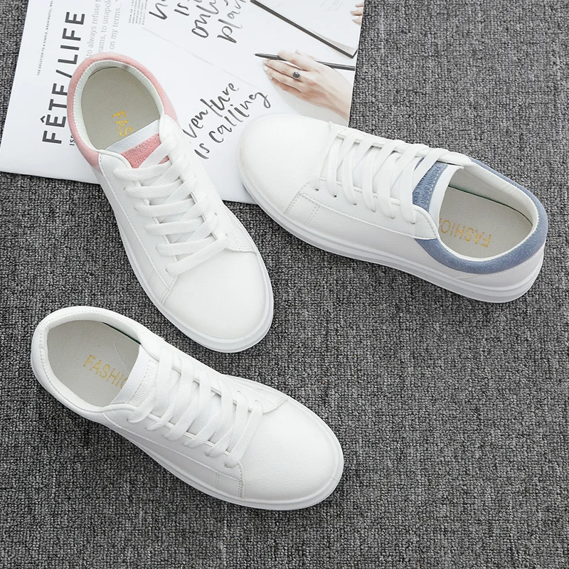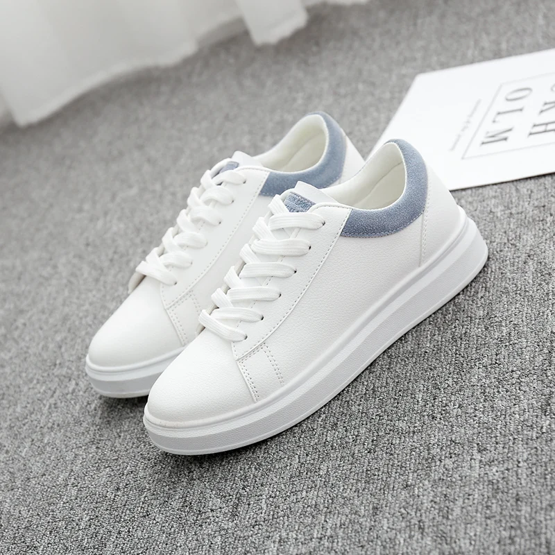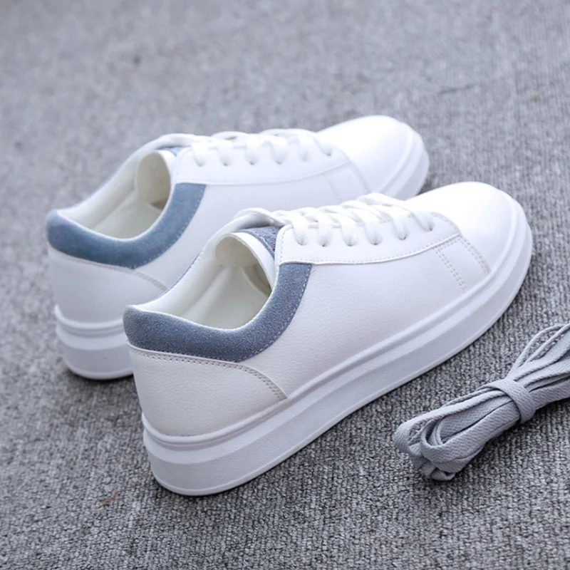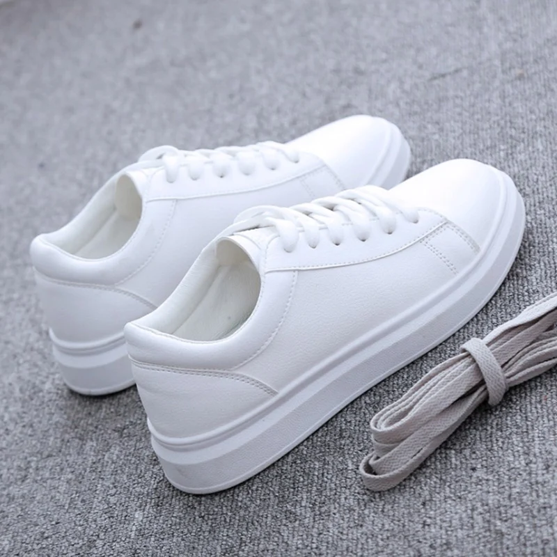 Women Casual Shoes 2019 Fashion Soft Pu Leather Women Sneakers Flats Platform Spring Autumn Breathable White Women Shoes