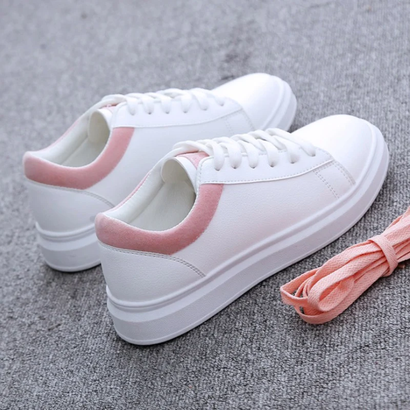 Women Sneakers 2018 Spring Autumn Pu Leather Women Shoes Fashion Lace-Up Women Flats Breathable White Women Casual Shoes