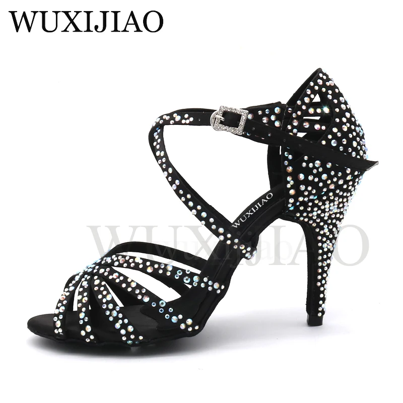 Limited Offer Wuxijiao Women Party Dance Shoes Satin Shining Rhinestones Soft Bottom Latin Dance Shoes Woman Sals with Free Shipping Worldwide!