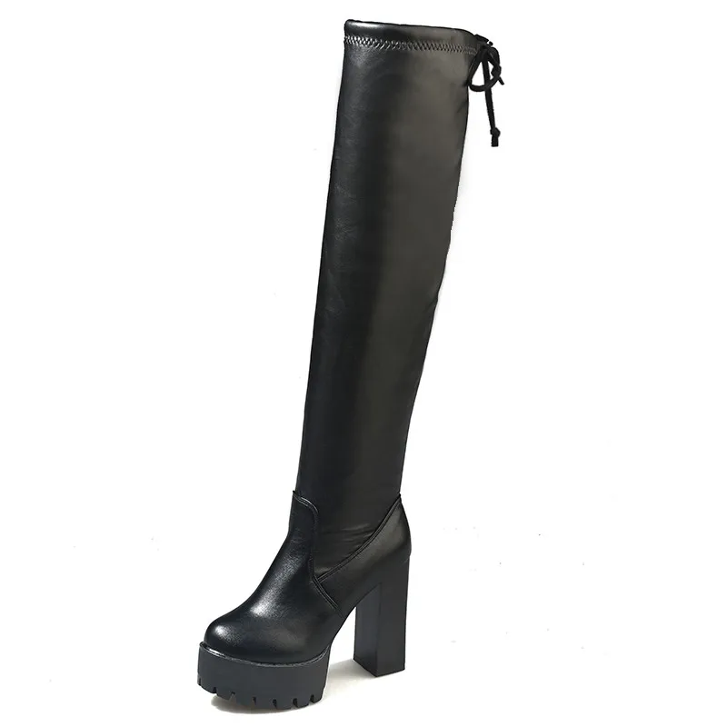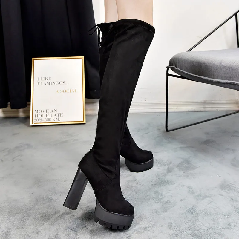 Women Black Long Boots 2020 Winter High Platform Wedge Shoes Woman Fashion Hidden Heels Over The Knee Botas Female Lace-Up Boots