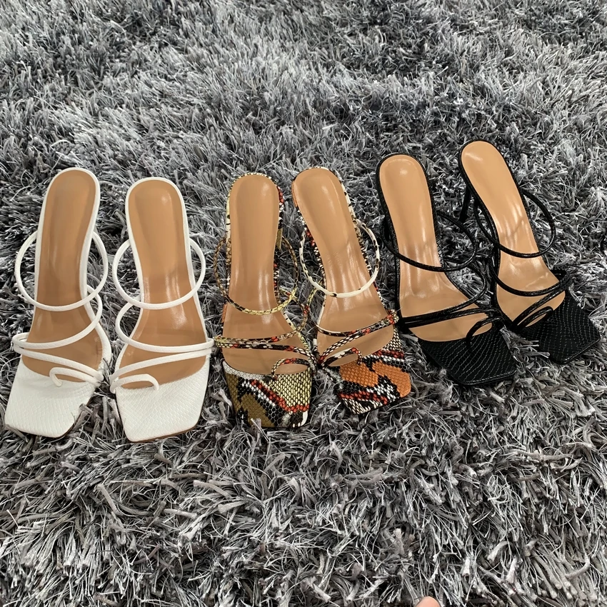 Women Sandals Snake Print Strappy Mule Heels Sandals Slippers Women High Heels Flip Flops Square Toe Slides Party Shoes Woman