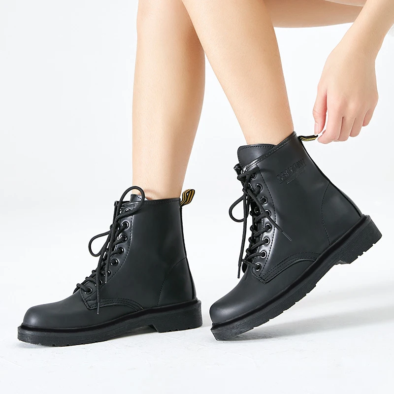 Winter Ankle Boots Pu Leather Women Boots For Martin Boots Women Work Shoes Black Round Toe Lace-Up Women Shoes Female Boots