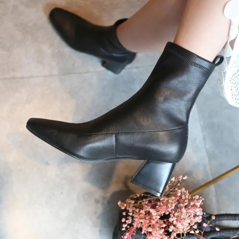 Limited Price Kemekiss Women Ankle Boots Fashion Patchwork Leather Shoes Women Square Heel Office Solid Color Cas with FREE Shipping Worldwide!