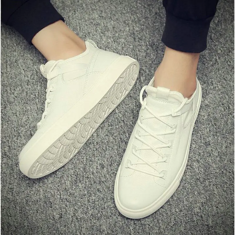High Quality Leather Fashion All Black Sneakers Men Zapatos Hombre Men Casual Flats Shoes A52-41
