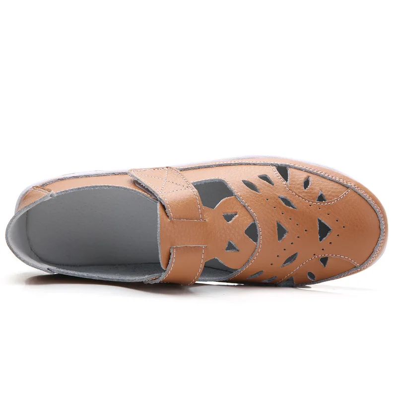 Plus Size Women Sandals Split Leather Soft Bottom Summer Shoes Woman Leisure Flats Cut-Out Slip On Mum Flat Sandalias Sh061201
